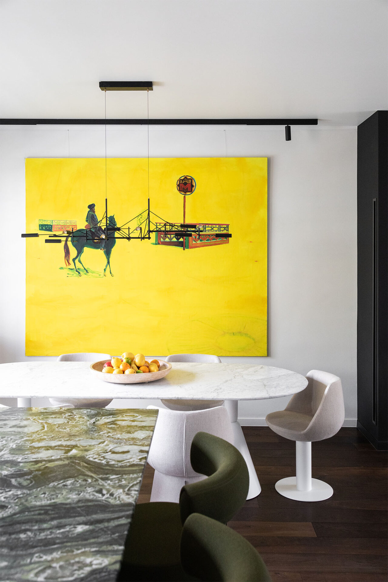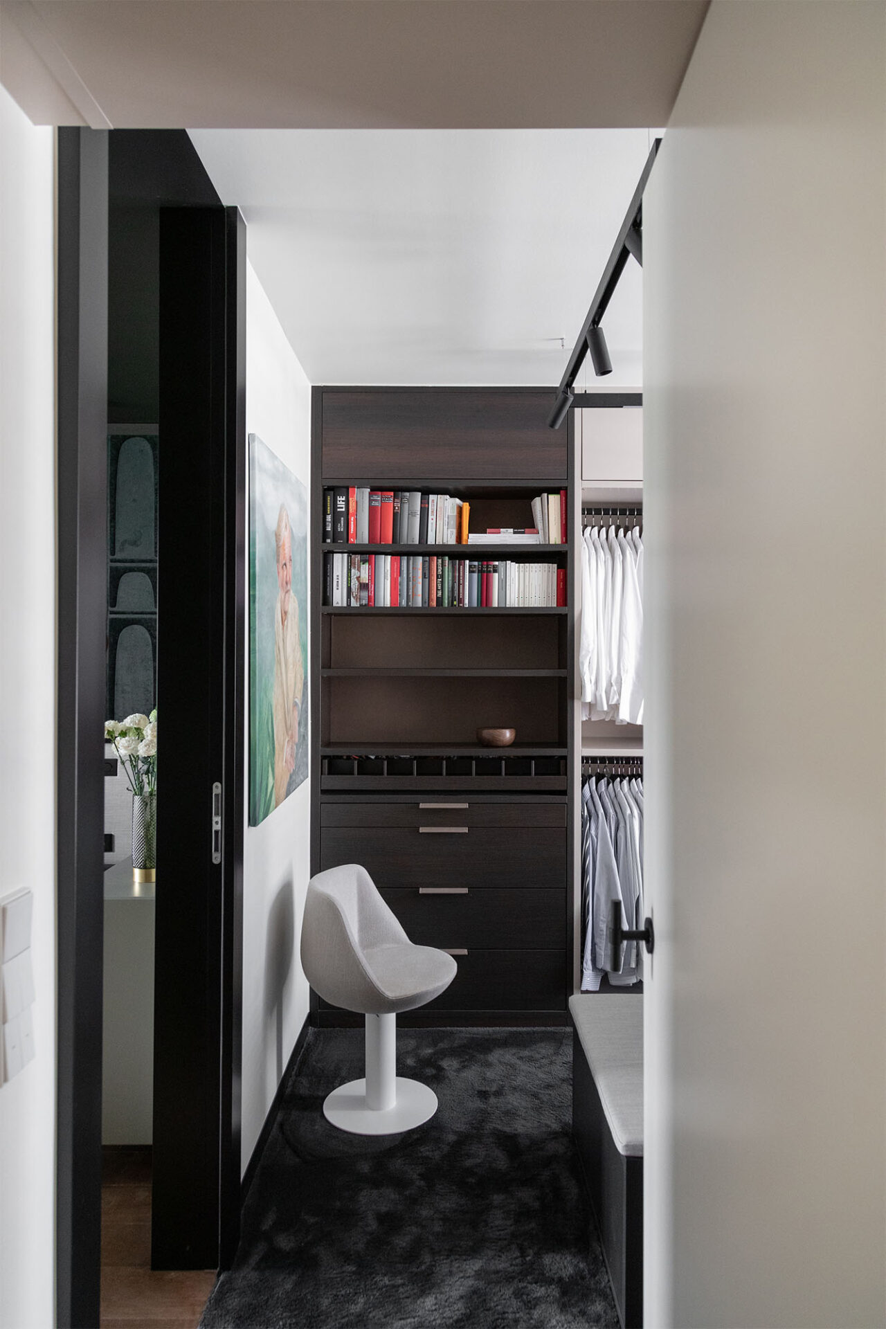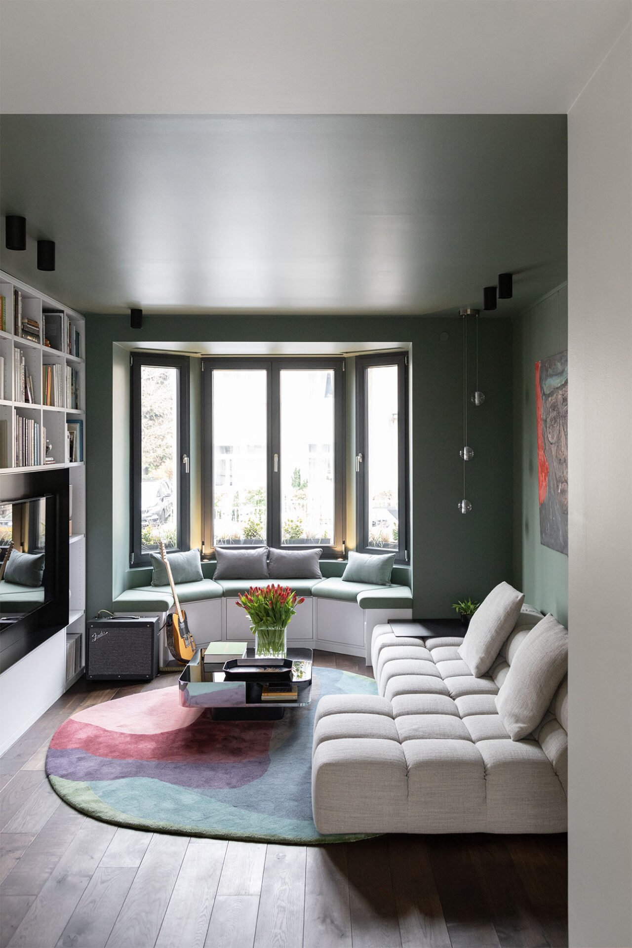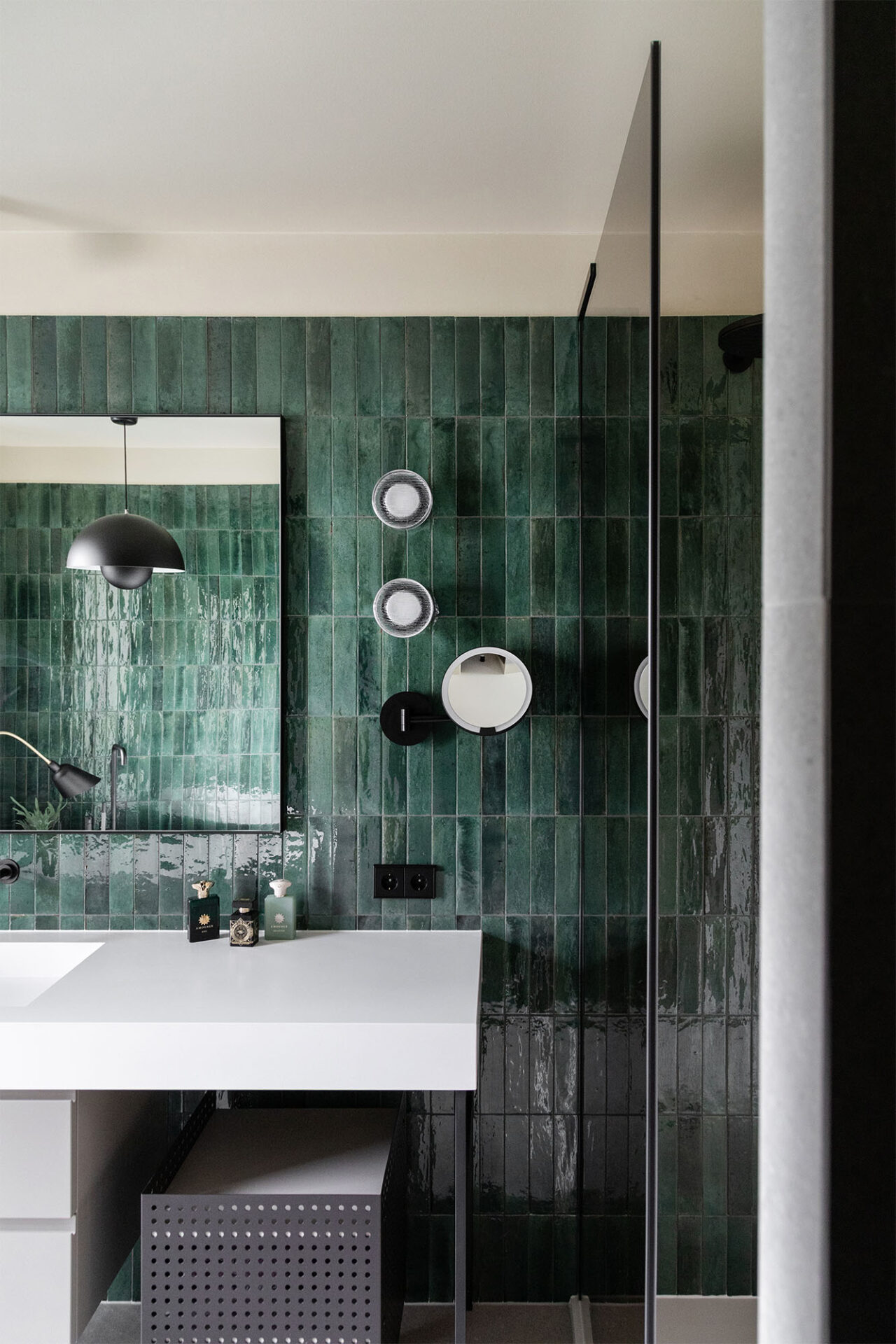 A cocoon for our client’s art and travel souvenirs, we wanted it to be in harmony with the garden which is its extension. Our architects therefore favored noble materials combining aesthetics and comfort, and different shades of green.