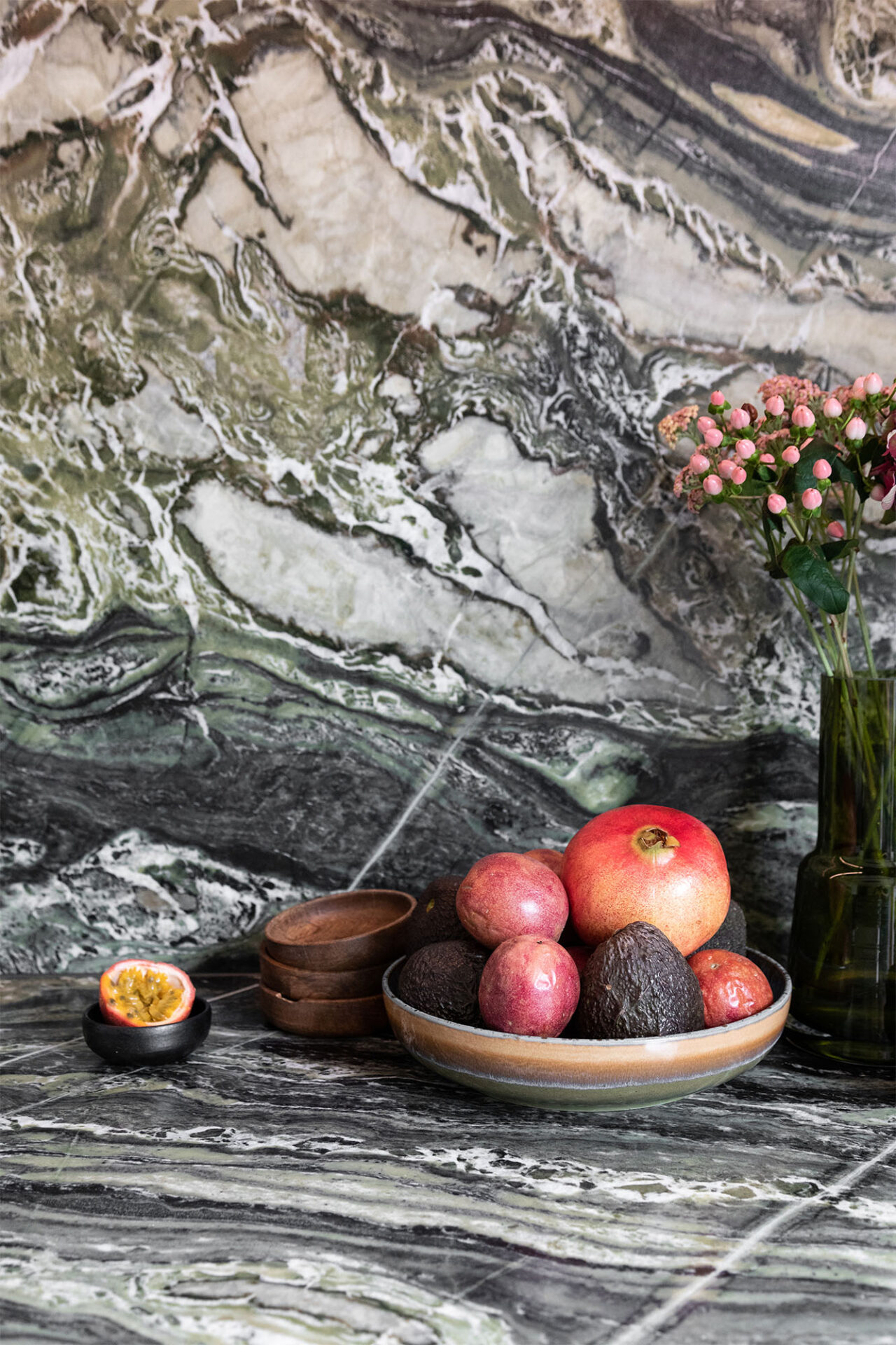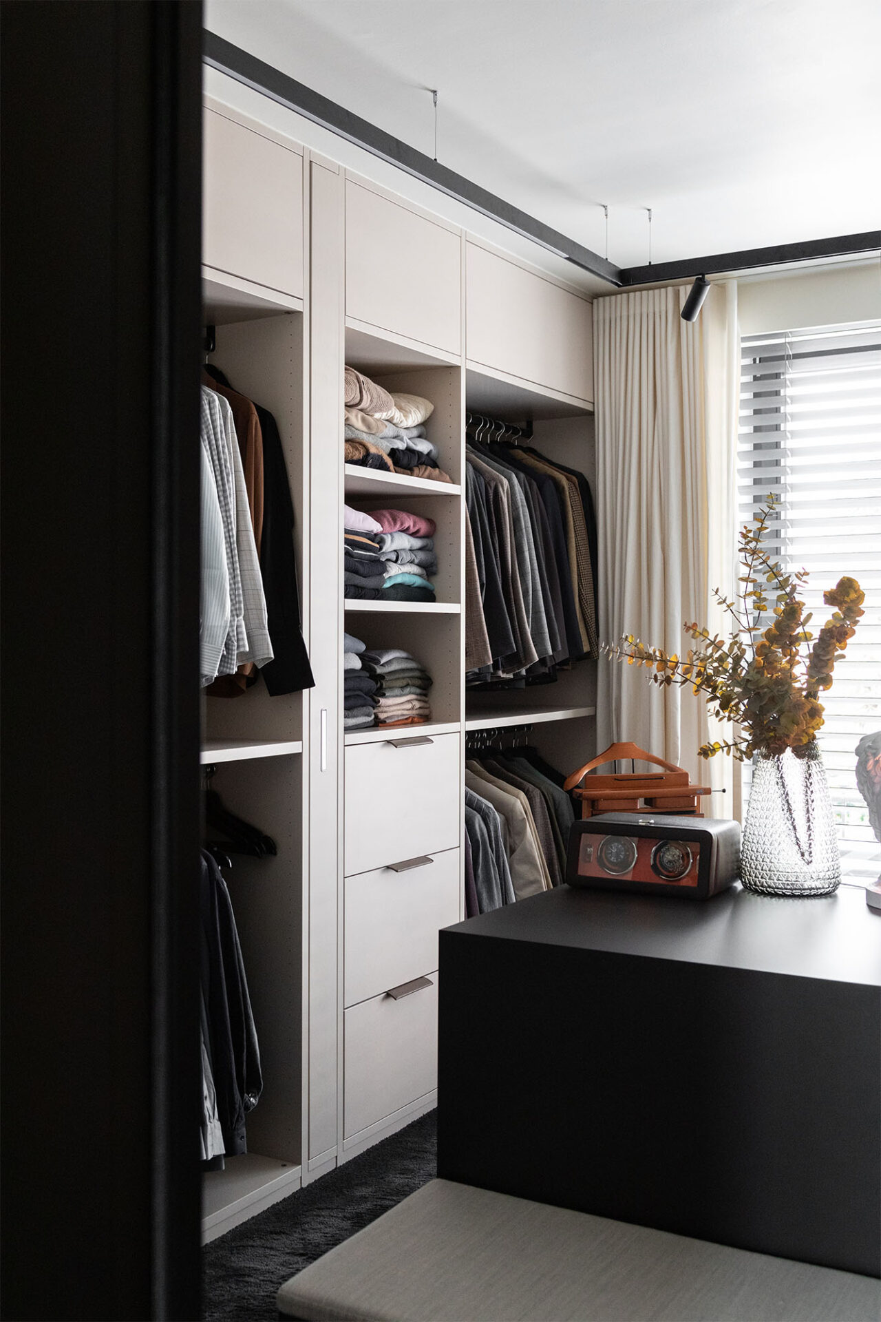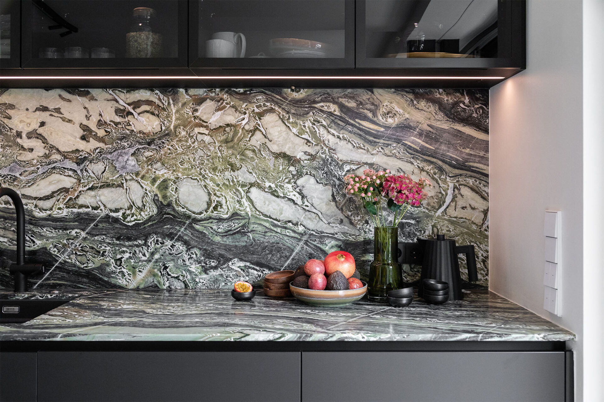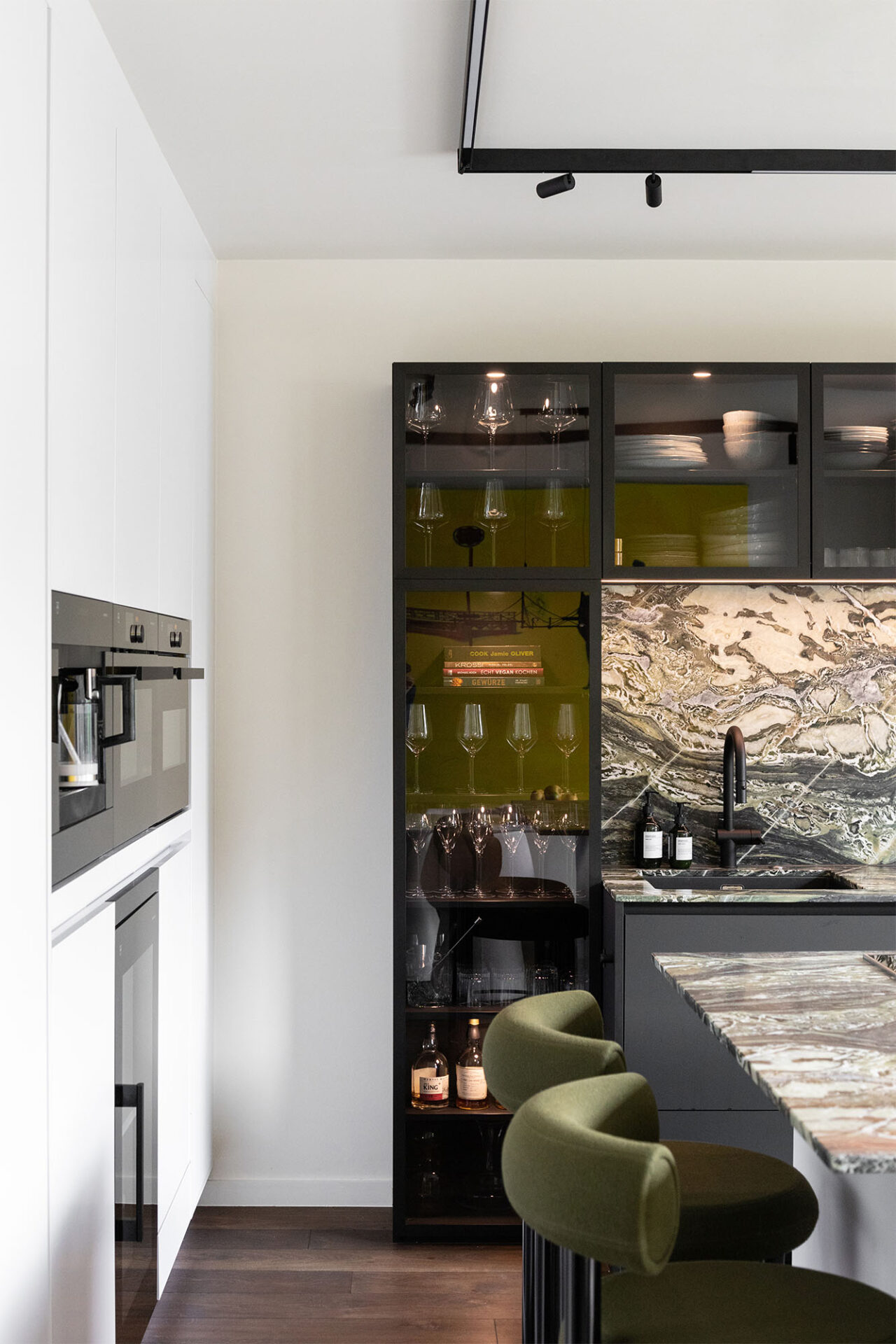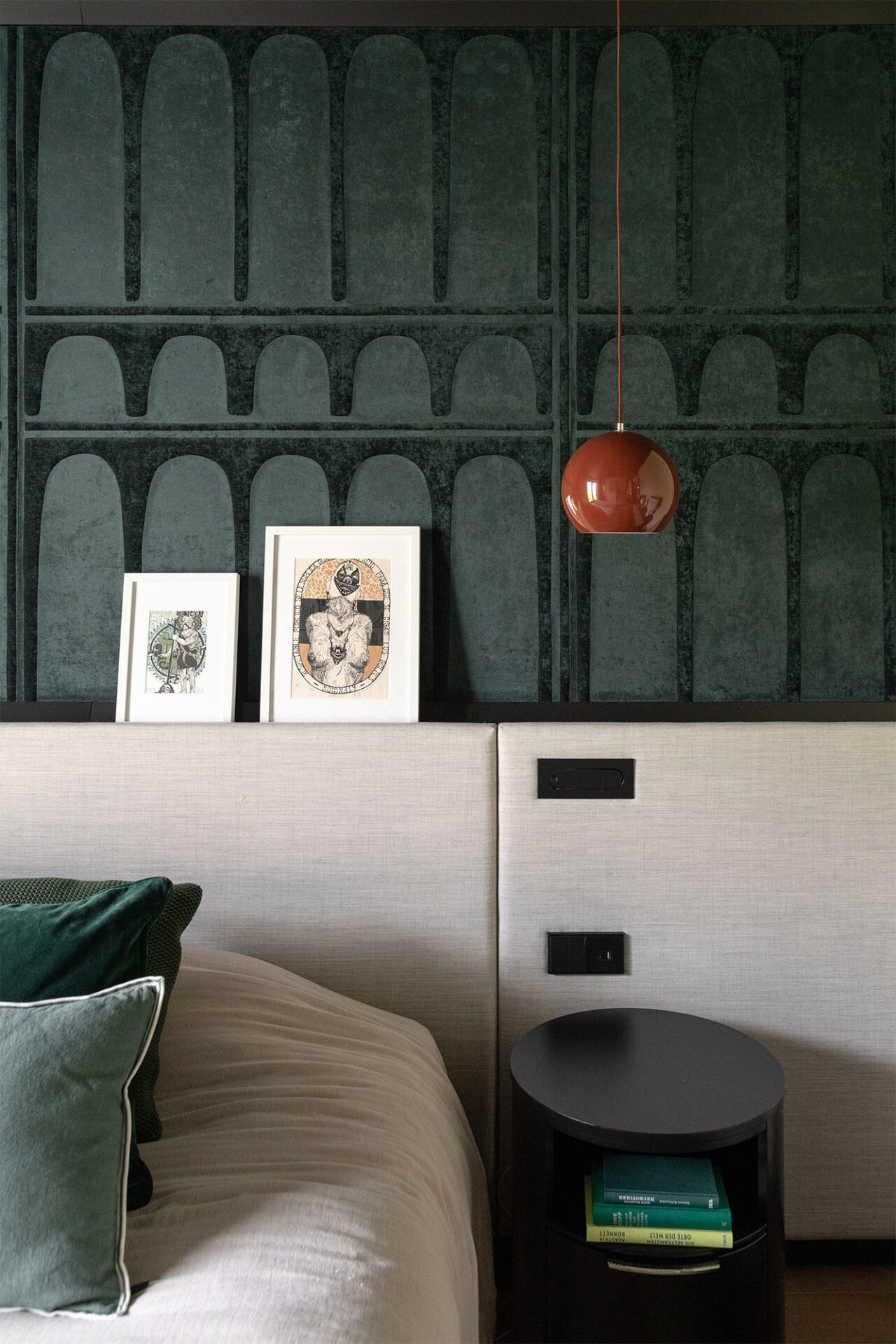 A cocoon for our client’s art and travel souvenirs, we wanted it to be in harmony with the garden which is its extension. Our architects therefore favored noble materials combining aesthetics and comfort, and different shades of green.