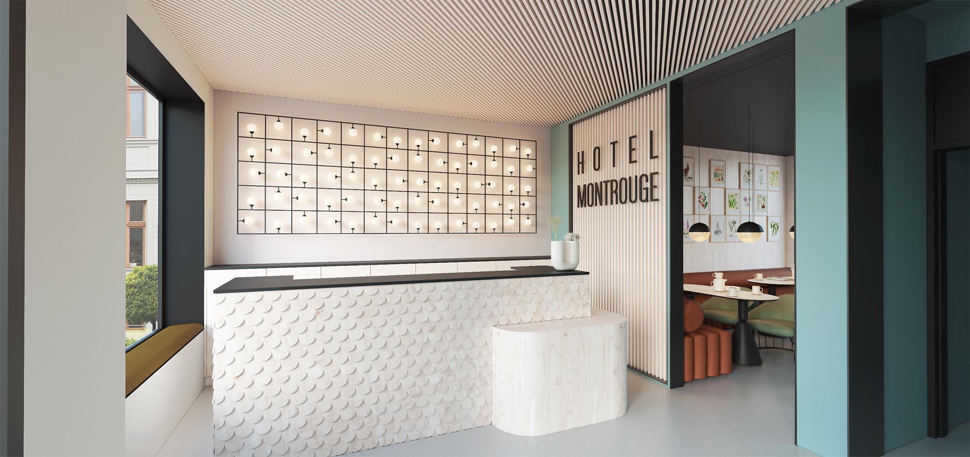 In order to give back some lustre to this 4 stars hotel, modern materials and pastel colors have been used to dress the place.